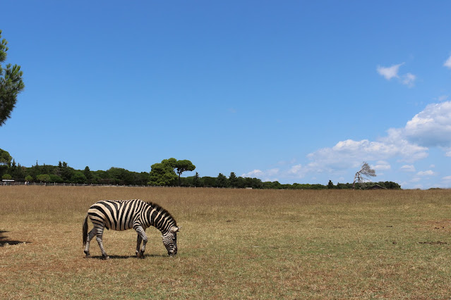 Odpeljali smo se mimo obale, kjer so se obiskovalci že kopali, mimo golf igrišč, prostranega gozda, mimo umetnega nasipa, v katerem so nekoč gojili ribe in mimo ožine, ki loči Veliki in Mali Brion. Prišli smo do severa Velikega Briona, kjer je safari. Sprva smo od daleč z navdušenjem opazovali zebre, bivole, lame in slonico Lanko. Vlakec je naredil 10-minutni postanek, da smo si lahko živali ogledali še sami. Mene so najbolj navdušile zebre.